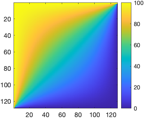 Increasing the resolution quickly increases the number of equations. For instance, with \(N=32^2\) and \(N=128^2\), MATLAB produces