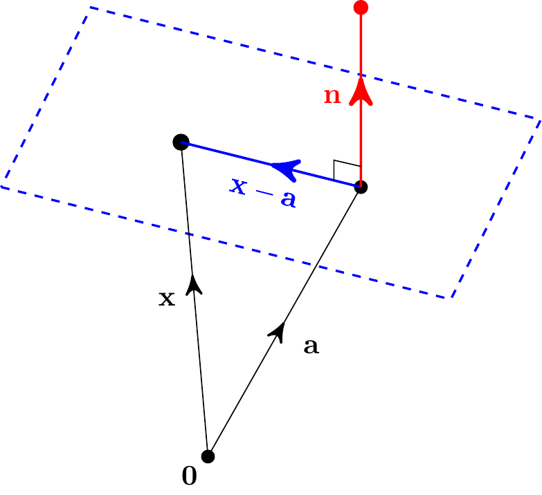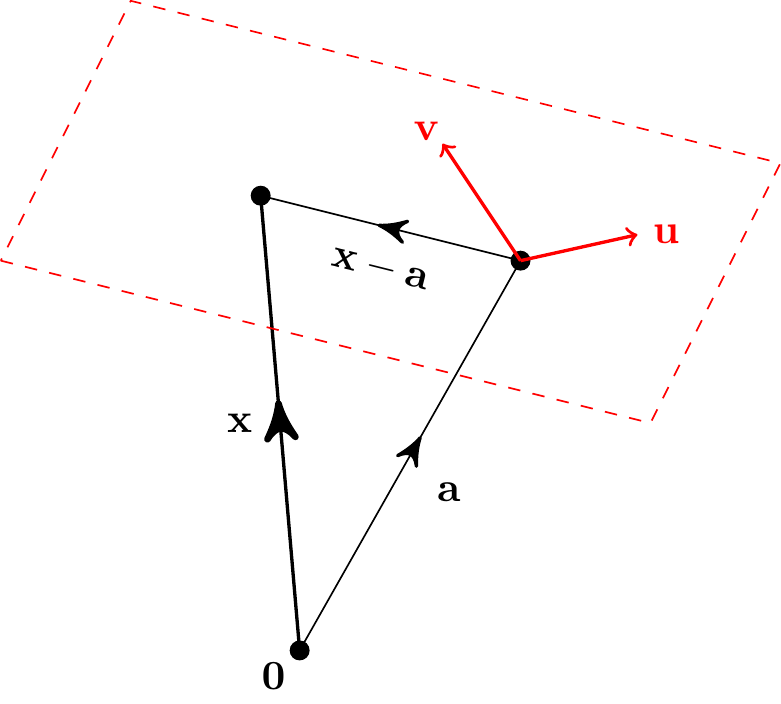 - Distributivity: \({\bf u}\cdot({\bf v}+{\bf w}) = {\bf u}\cdot{\bf v} + {\bf u}\cdot{\bf w}\).