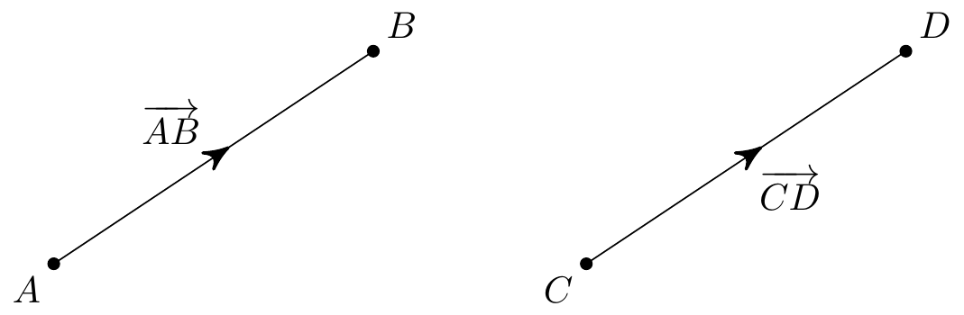 Given two points \(A\) and \(B\) (in \(\mathbb{R}^2\) or \(\mathbb{R}^3\) or \(\ldots\)), the vector \(\overrightarrow{AB}\) is the straight line path from \(A\) to \(B\). Vectors consist of both a direction and a length. We write \(\left|\overrightarrow{AB}\right|\) for this length and, if this equals 1 we call it a unit vector.