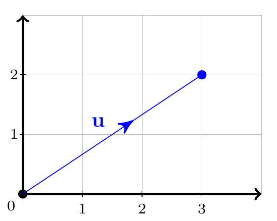 It can be represented as \({\bf u} = \displaystyle\begin{pmatrix} 3 \\ 2 \end{pmatrix}\), in the same form we used in the Linear Algebra topic.