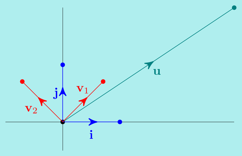 In particular, a basis must have \(m=n\), i.e. the same number of vectors as the dimension. Furthermore, there is exactly one way to write any given vector \({\bf u}\in\mathbb{R}^n\) as \[{\bf u}=c_1{\bf v}_1+c_2{\bf v}_2+\ldots+c_n{\bf v}_n\] We call \(c_1,c_2,\ldots,c_n\) the coordinates of \({\bf u}\) with respect to the basis \(\{{\bf v}_1,{\bf v}_2,...,{\bf v}_n\}\).