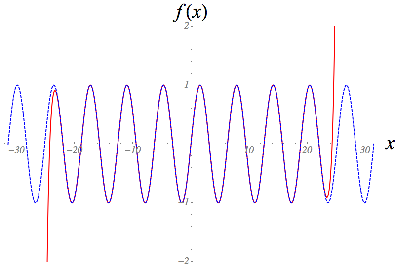 Before showing you how to find the \(c\)’s, I feel I should address the basic philosophical question: why on earth would you want to do this? In full honesty this is one of the most useful things we will learn in this course. The reason is that generally if you are trying to solve a real-life problem of any sort, the kinds of \(f(x)\) that you get are just insanely hideous and impossible to work with. On the other hand, if it can be well approximated by a polynomial, usually you can make some progress. It is not a terrible oversimplification to say that the vast majority of physics consists of solving a system where only \(c_1\) and \(c_2\) are nonzero (which you can usually do), and then spending your entire career trying to figure out how to put back \(c_3\).